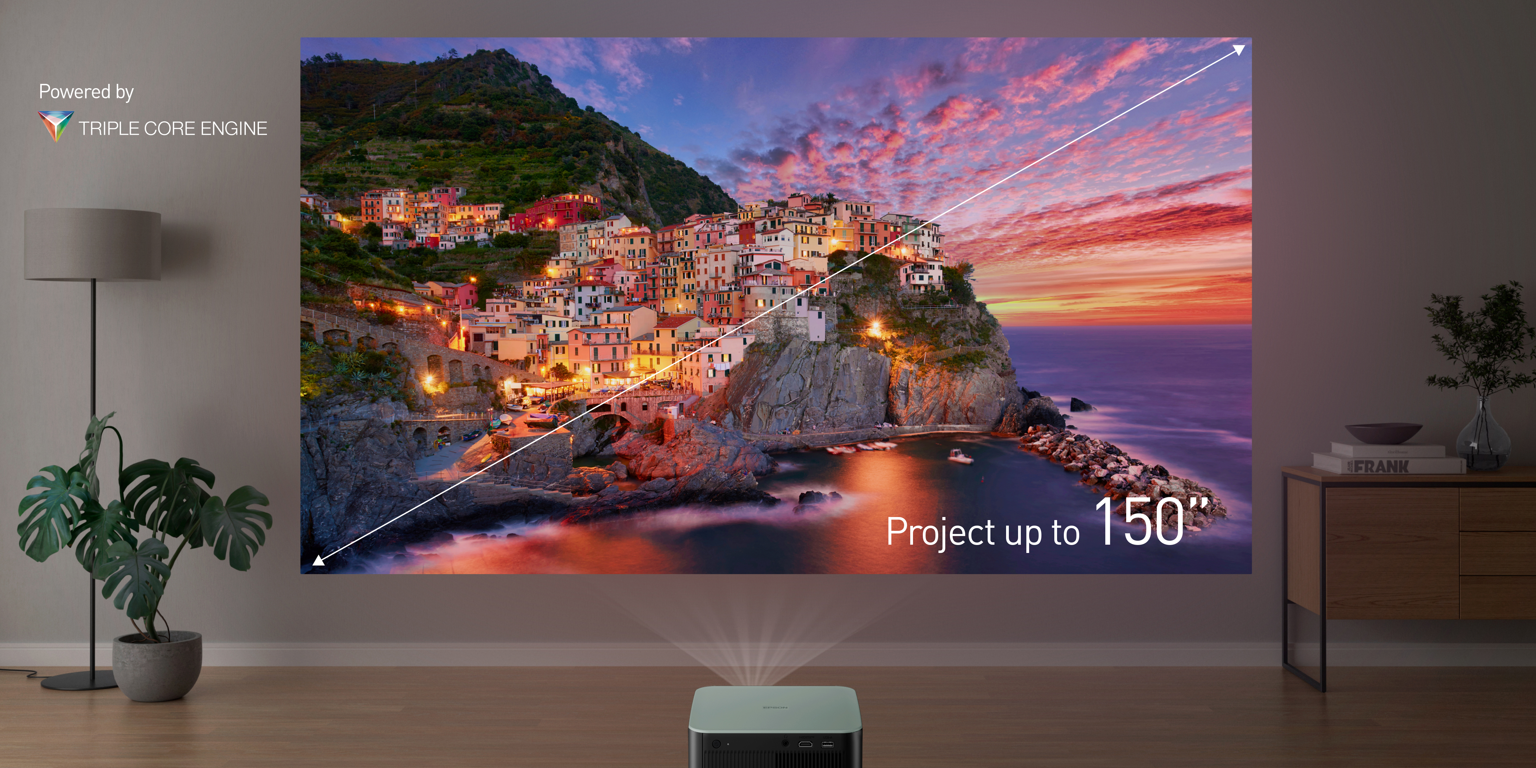 Turn any space into an unforgettable event with the Lifestudio Pop EF-61G portable projector. Enjoy a stunning Full HD picture up to 150", powered by Epson’s exclusive 3-chip 3LCD Triple Core Engine for vivid, true-to-life colour. Elevate the viewing experience with Sound by Bose audio that fills the room with rich, immersive sound.